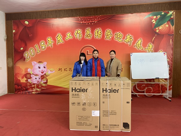年會的重頭戲就是抽獎環(huán)節(jié),今年公司設置了豐厚的獎品,從六等獎到一等獎,高潮一波接著一波,二等獎的洗衣機讓人直呼過癮,而一等獎的55寸大電視亮相更是驚爆全場。隨著開獎,一個個獎品都分分花落員工家,公司各位領導分別為他們頒獎,祝他們新的一年好運連連。