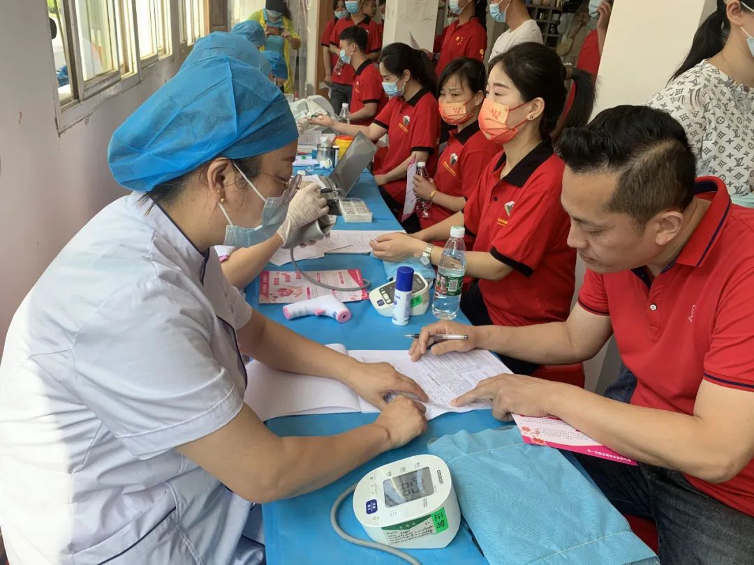 市中心血站的醫(yī)護(hù)人員認(rèn)真的為報(bào)名體檢的同事登記信息、做身體檢查。